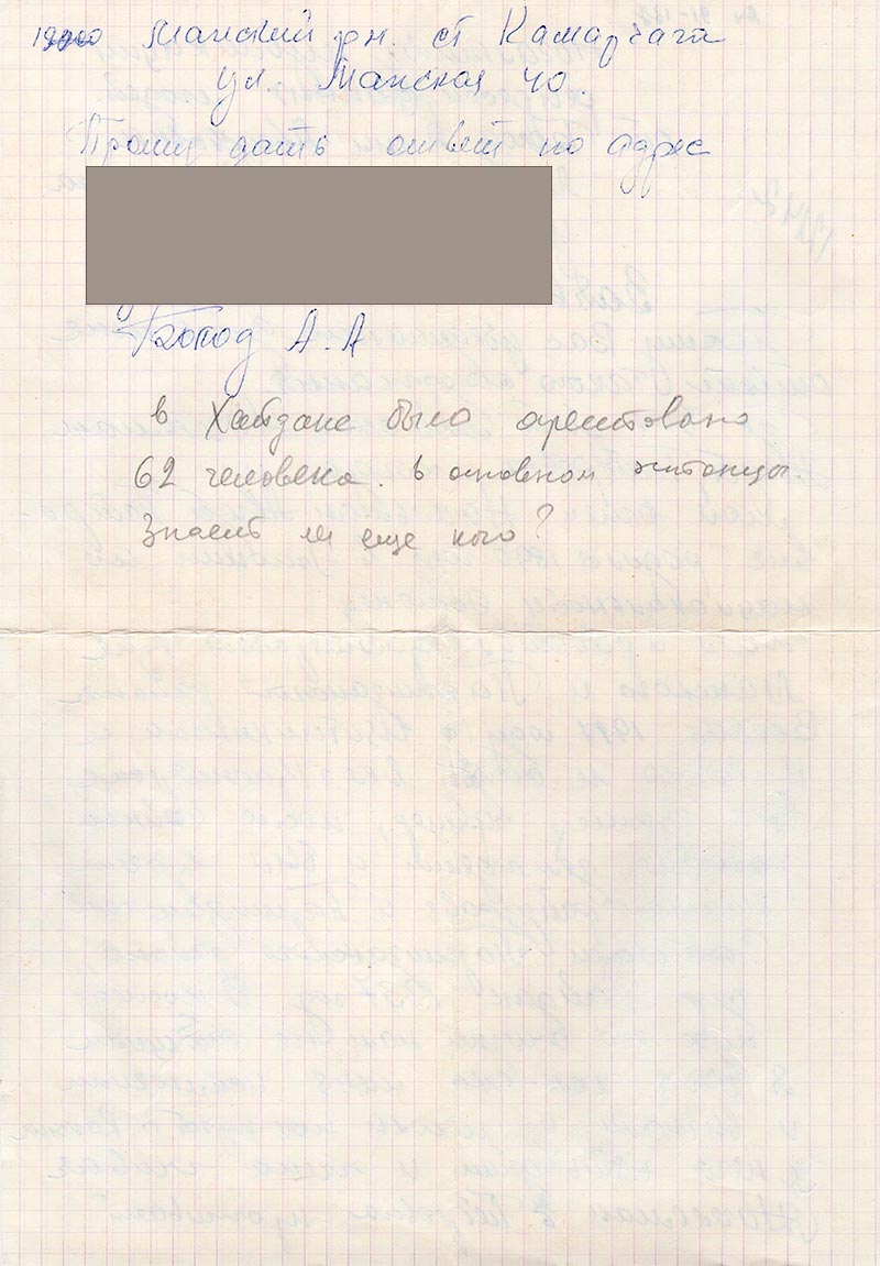 (приписка карандашом: в Хайдаке было арестовано 62 человека. В основном эстонцы. Знаете ли еще кого?)