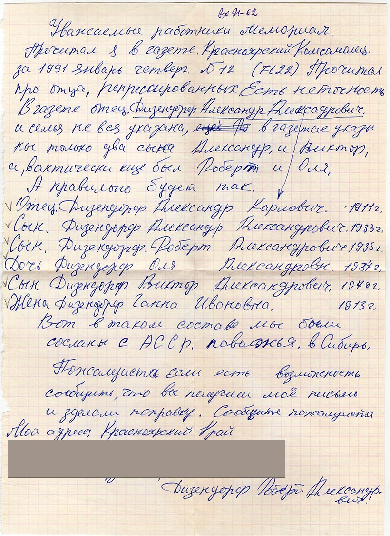 Письма в Красноярское общество "Мемориал"