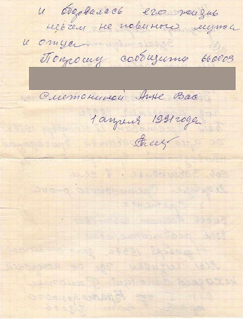 Был арестован 18 сентября 1937 г. До ареста работал бригадиром полеводческой