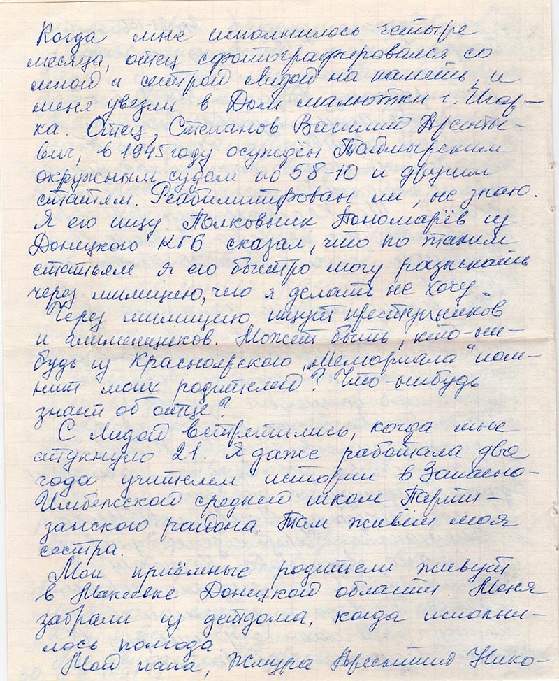 Красноярского «Мемориала» помнит моих родителей? Что-нибудь знает об отце?