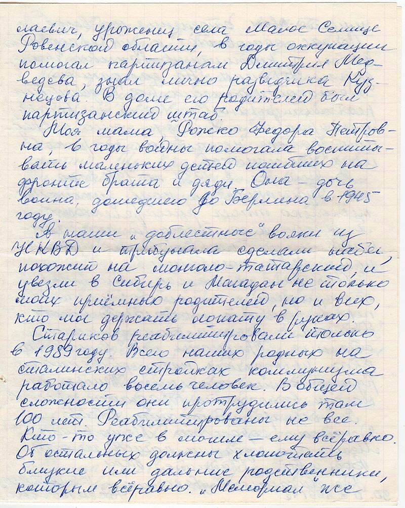 Стариков реабилитировали только в 1989 году. Всего наших родных на сталинских