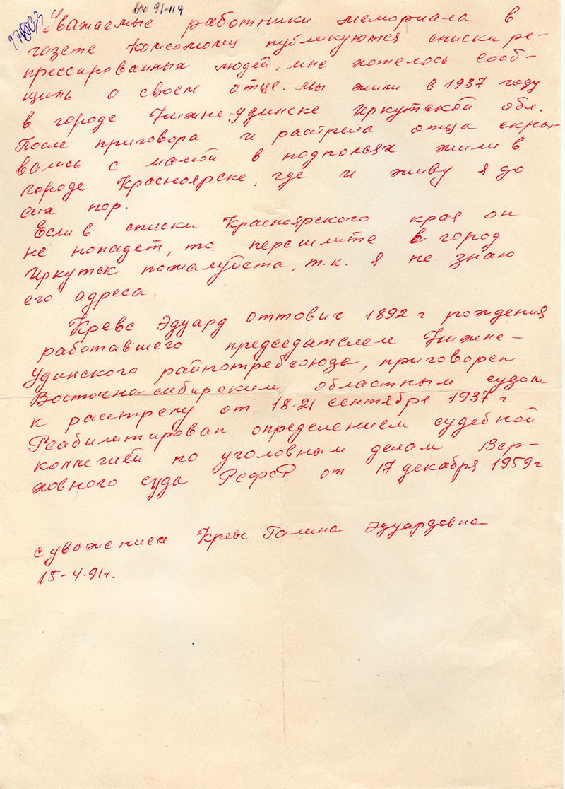 Письма в Красноярское общество "Мемориал"