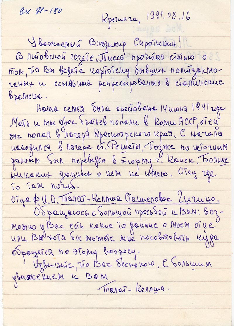 В литовской газете «Тиеса» прочитал статью о том, что вы ведете картотеку бывших политзаключенных и ссыльных репрессированных в сталинские времена.