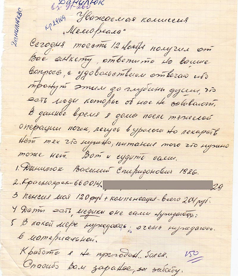 Сегодня то есть 12 ноября получил от Вас анкету, ответить на ваши вопросы, с удовольствие отвечаю ибо тронут до глубины души, что есть люди которые об нас не забывают.