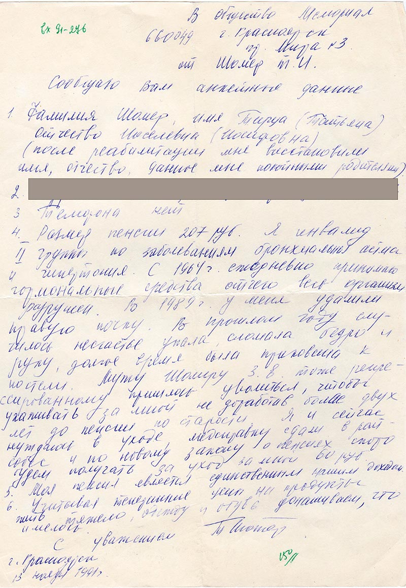 1. Фамилия Шомер, имя Тируа (Татьяна) отчество Иоселевна (Иосифовна)