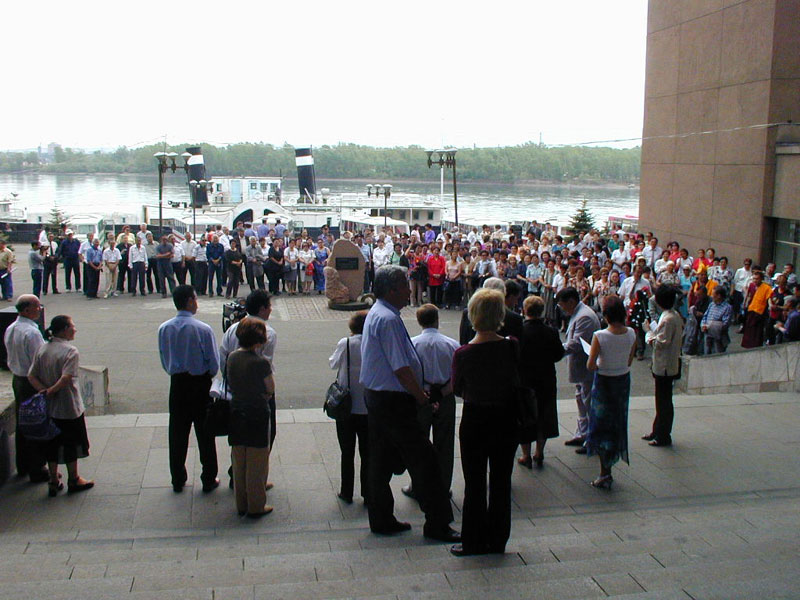 28 мая из Калмыкии в Красноярск прибыл поезд памяти "Дети войны - дети Сибири". Участники акции отдали дань памяти сибирякам, погибшим в годы войны, своим землякам, похороненным на красноярской земле и всем жертвам политических репрессий. Поезд памяти прошел по местам проживания калмыков, депортированных в Сибирь во время войны: Омск, Барнаул, Новосибирск, Томск, Красноярск. К нам прибыли дети репрессированных, буддийские монахи, философы, врачи, учителя и многие другие - около 500 человек.