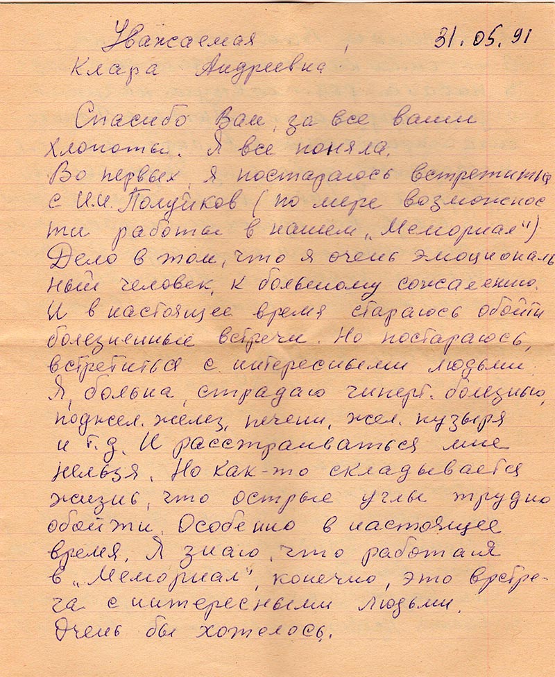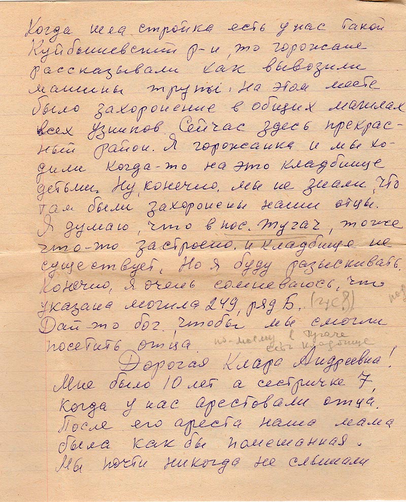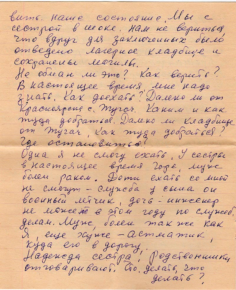 Письма в Красноярское общество "Мемориал"