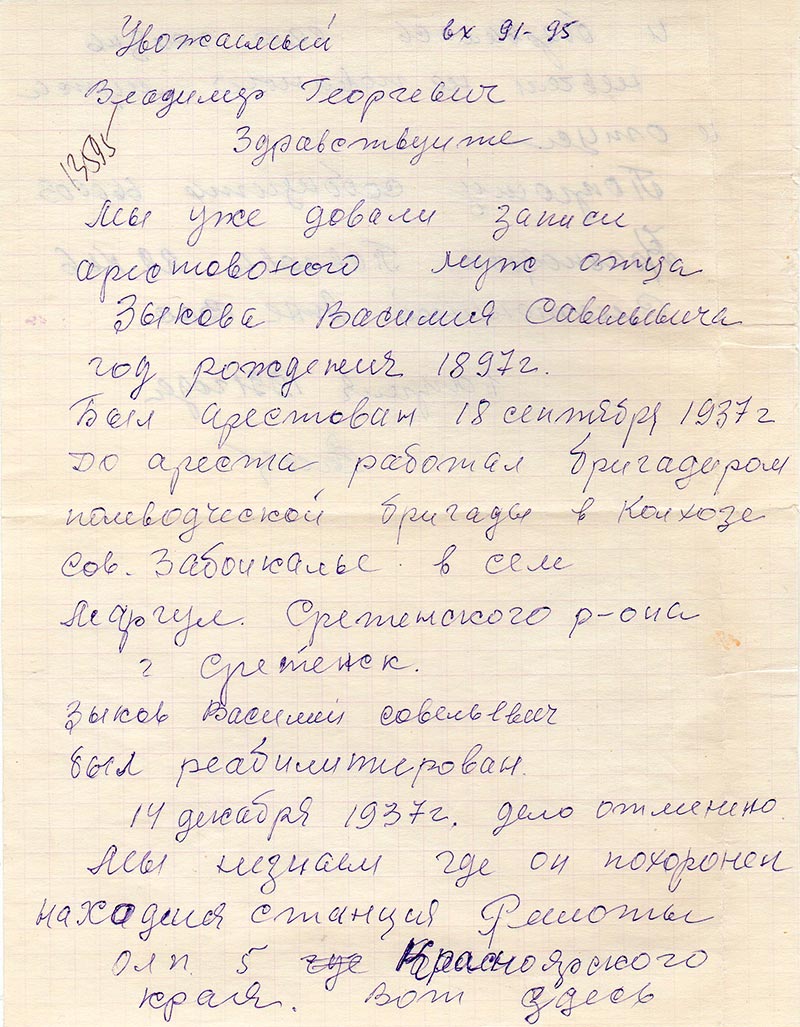 Мы уже довали записи арестовоного муж отца Зыкова Василия Савельевича год