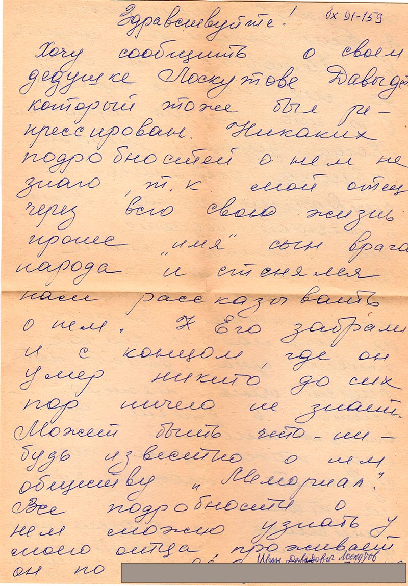 Письма в Красноярское общество "Мемориал"