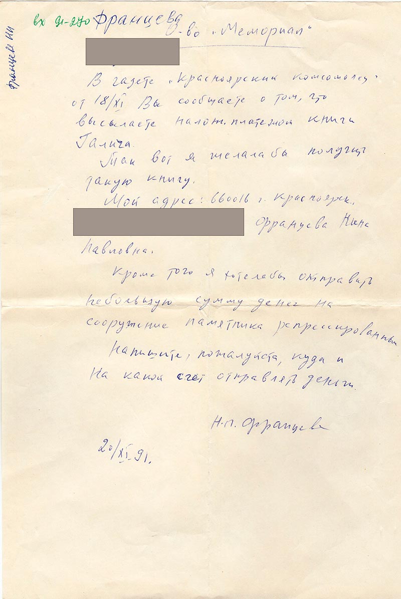 В газете «Красноярский комсомолец» от 18/XI Вы сообщаете о том, что высылаете