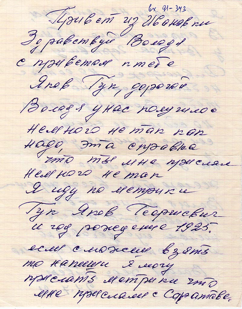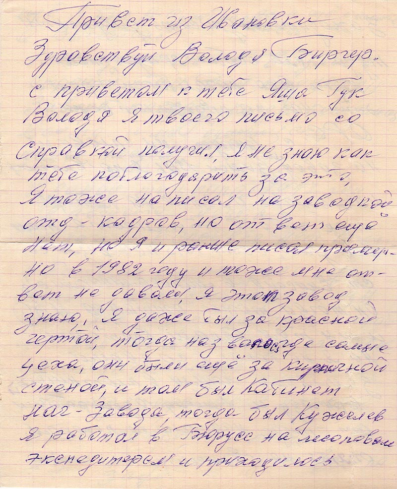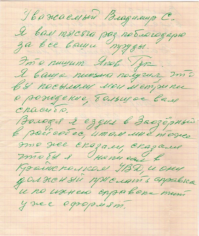Здравствуй Володя с приветом к тебе Яков Гук, Володя получил я твоего письмо, и