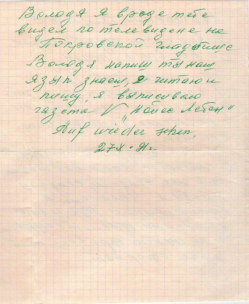 Володя я твоего письмо со справкой получил. Я не знаю как тебе поблагодарить за это.