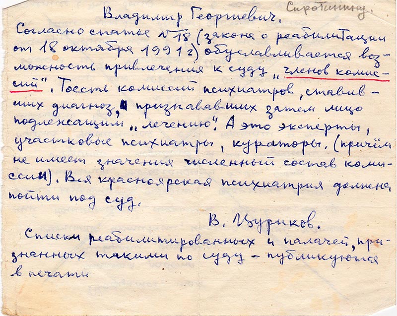 комиссии). Вся красноярская психиатрия должна пойти под суд.
