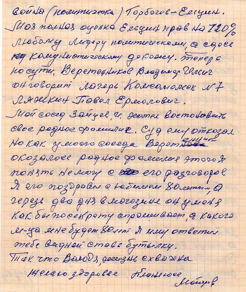 его разговоров. Я его поздравил с юбилеем 80 летием, а через два дня в магазине