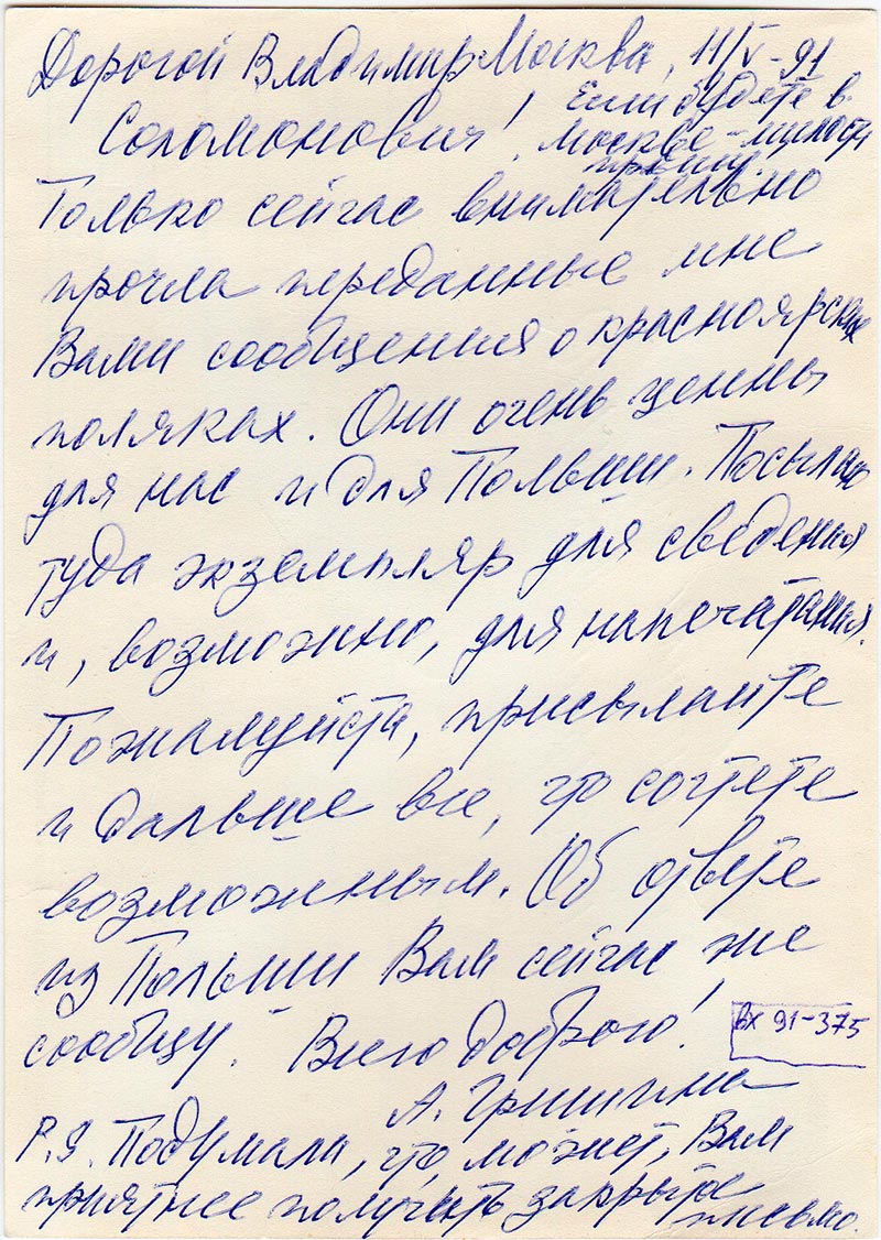 Москва 7/XII.91