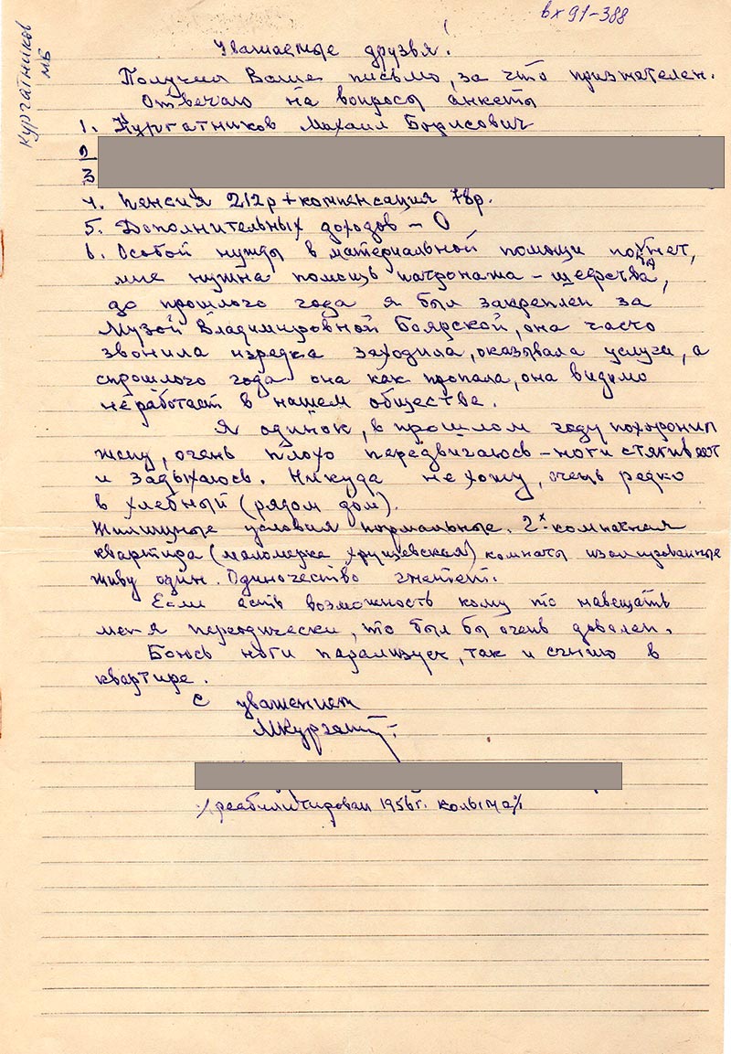 Получил Ваше письмо, за что признателен. Отвечаю на вопросы анкеты