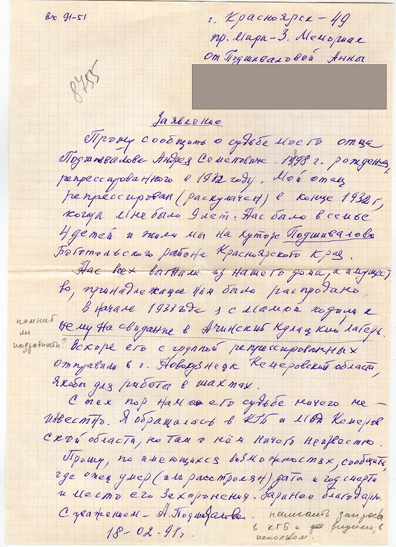 С Уважением А. Подшивалова (комментарий: написать запросв в КГБ и видимо в исполком)