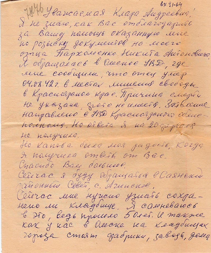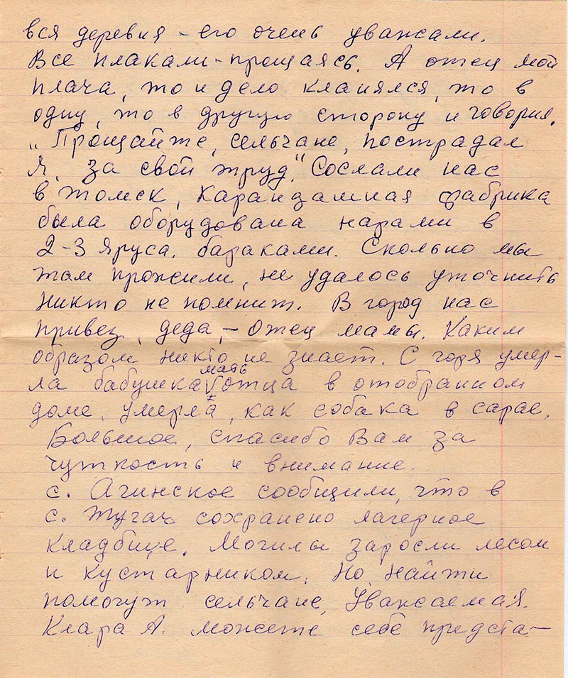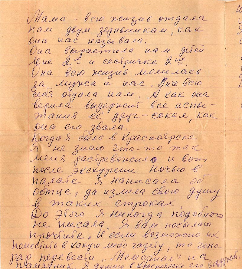 Письма в Красноярское общество "Мемориал"