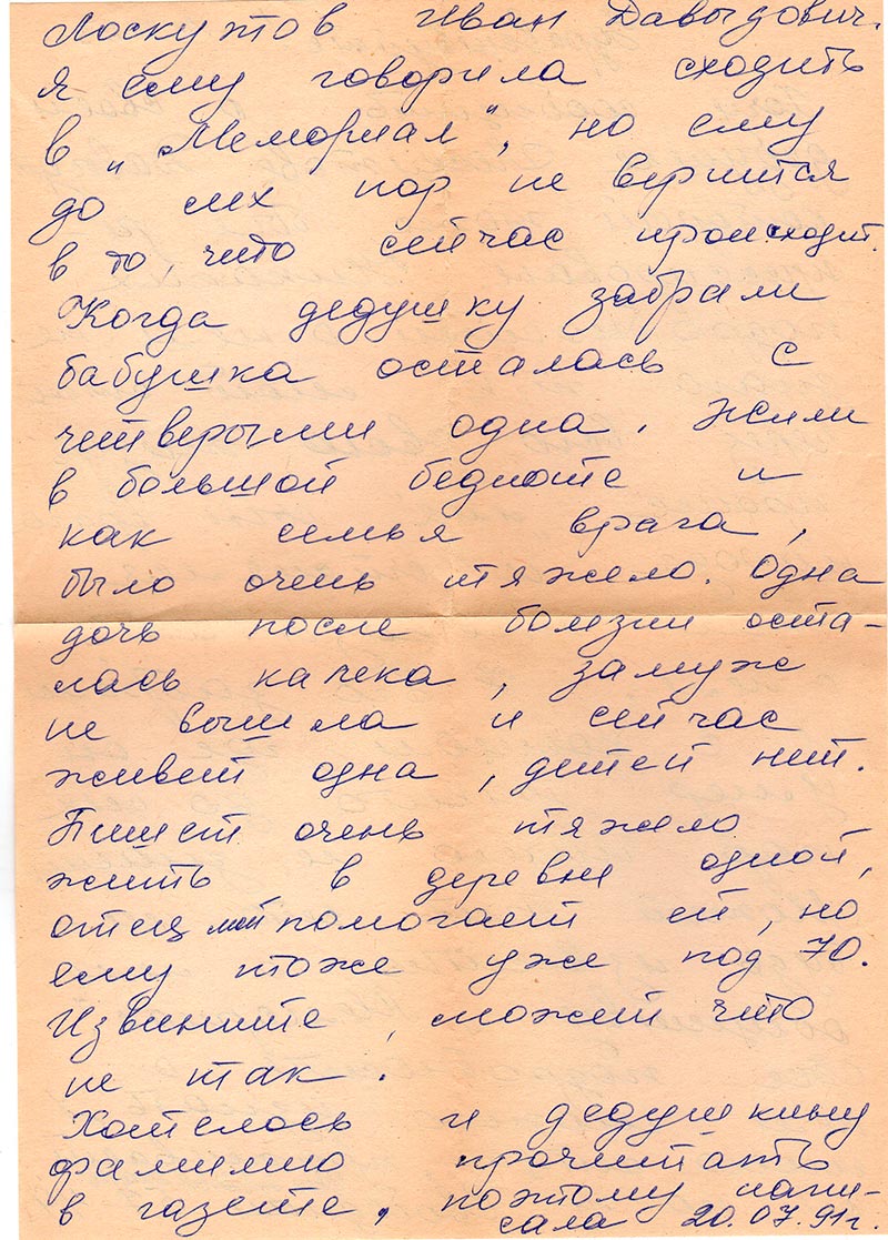 Письма в Красноярское общество "Мемориал"