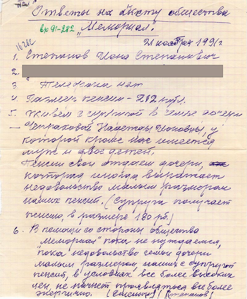 6. В помощи со стороны общества «Мемориал» пока не нуждаемся, пока недовольство