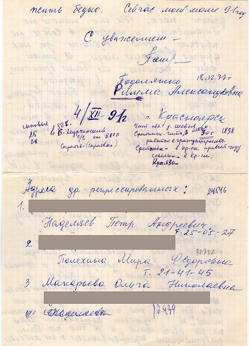Адреса др. репрессированных: