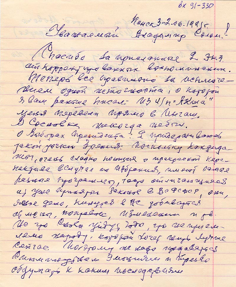 Спасибо за присланные 2 экз. откорректированных воспоминаний.