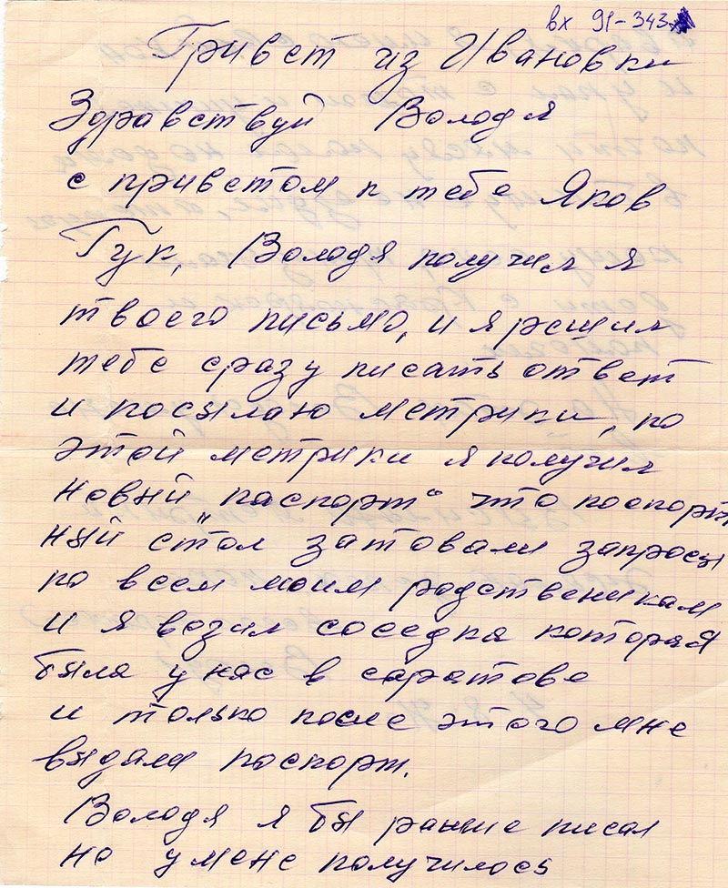 Здравствуй Володя с приветом к тебе Яков Гук, Володя получил я твоего письмо, и
