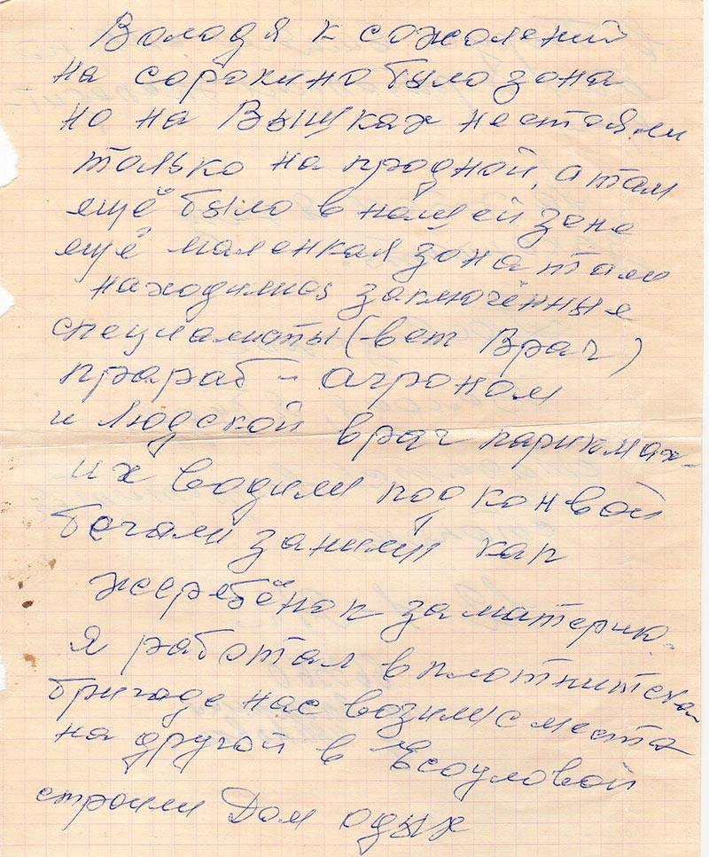Володя я к сожалению на сорокино было зона но на Вышках не стояли только на продной. а там ещё было в нашей зоне ещё маленькая зона там находились заключённые специалисты (вет Врач) прараб – агроном и Людской врач парикмах. их водили под конвой бегали за ними как жеребёнок за материю.