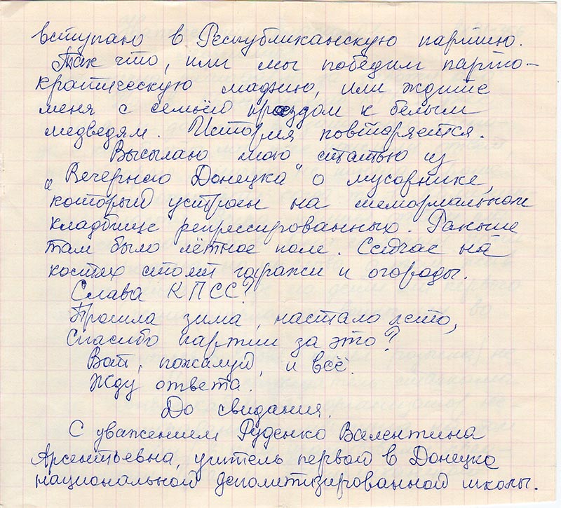 С уважением Руденко Валентина Арсентьевна, учитель первой в Донецке национальной