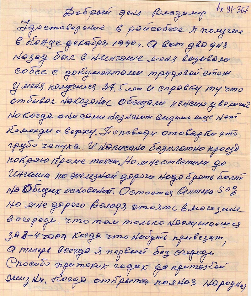 Удостоверение в райсобесе я получил в конце декабря 1990 г. А вот два дня назад был в Н. Ингаше меня вызывали собес с документами трудовой стаж у меня получился 37,5 лет и справку ту что отбывал наказание. Обещали пенсию увеличить но когда они сами незнают видимо еще нет команды с верху. По поводу отоварки это грубо чепуха. И написано бесплатно проезд по краю кроме такси. Но мне ответили до Ингаша по железной дороге надо брать билет на общих основаниях. Остоется аптека 50%, но мне дорого Володя стоять в магазине в очереди, что так только наслушаешся за 3-4 часа когда что нибуть привезут, а теперь всегда я первый без очереди.