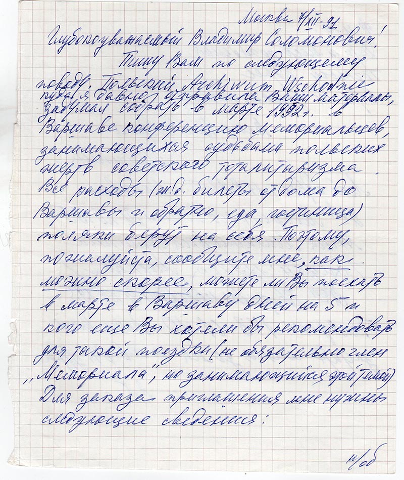 Ваши материалы, задумал собрать в марте 1992г. в Варшаве конференцию