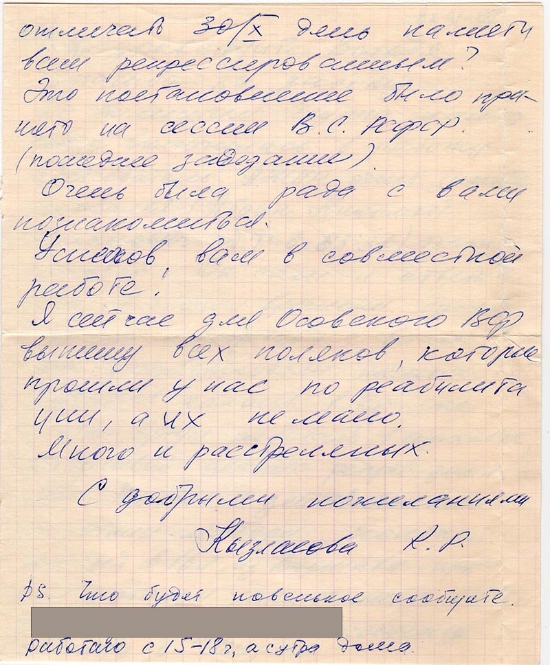 Статью я вам дарю из-за фотографии отца, а вдруг дело встретите. ДА, вы будете отмечать 30/Х день памяти всех репрессированным? Это постановление было принято на сессии ВС РСФСР (последнее заседание).
