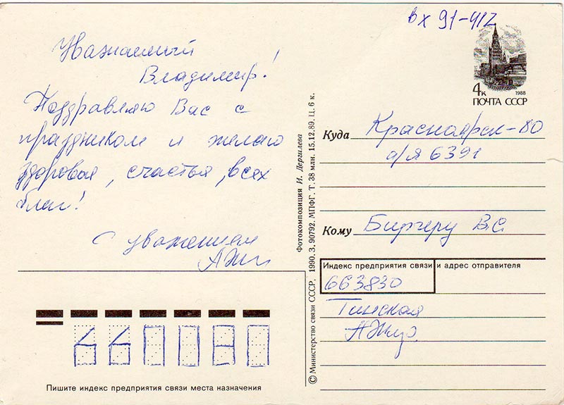 Красноярск-80 ……………….. Бергеру В. С.
